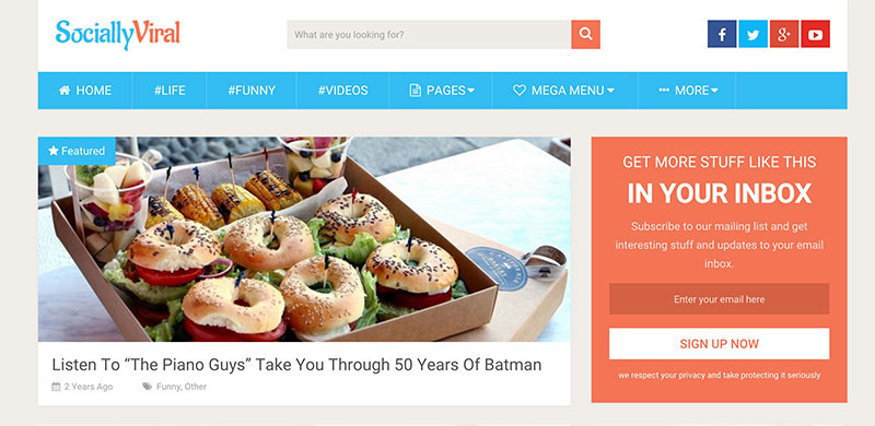 As the name suggests, SociallyViral is designed to increase your social shares and make your content viral. This is made possible through features, such as full social integration, subscription box, and 4 different types of loading effects. It is also AdSense optimized which enables you to see higher CPCs and RFMs.